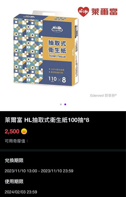 標題[情報] 奇摩app換3000組萊爾富抽取式衛生紙