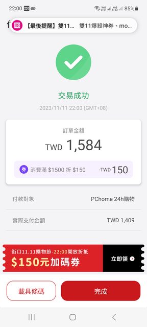 a053971j: 終於搶到了,開好付款碼等時間,讚讚 36.237.14.244 11/11 22:01