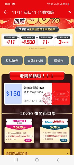 jim31117: 888-50也照用,1500-150也搶到,平日消 27.51.144.227 11/11 22:22