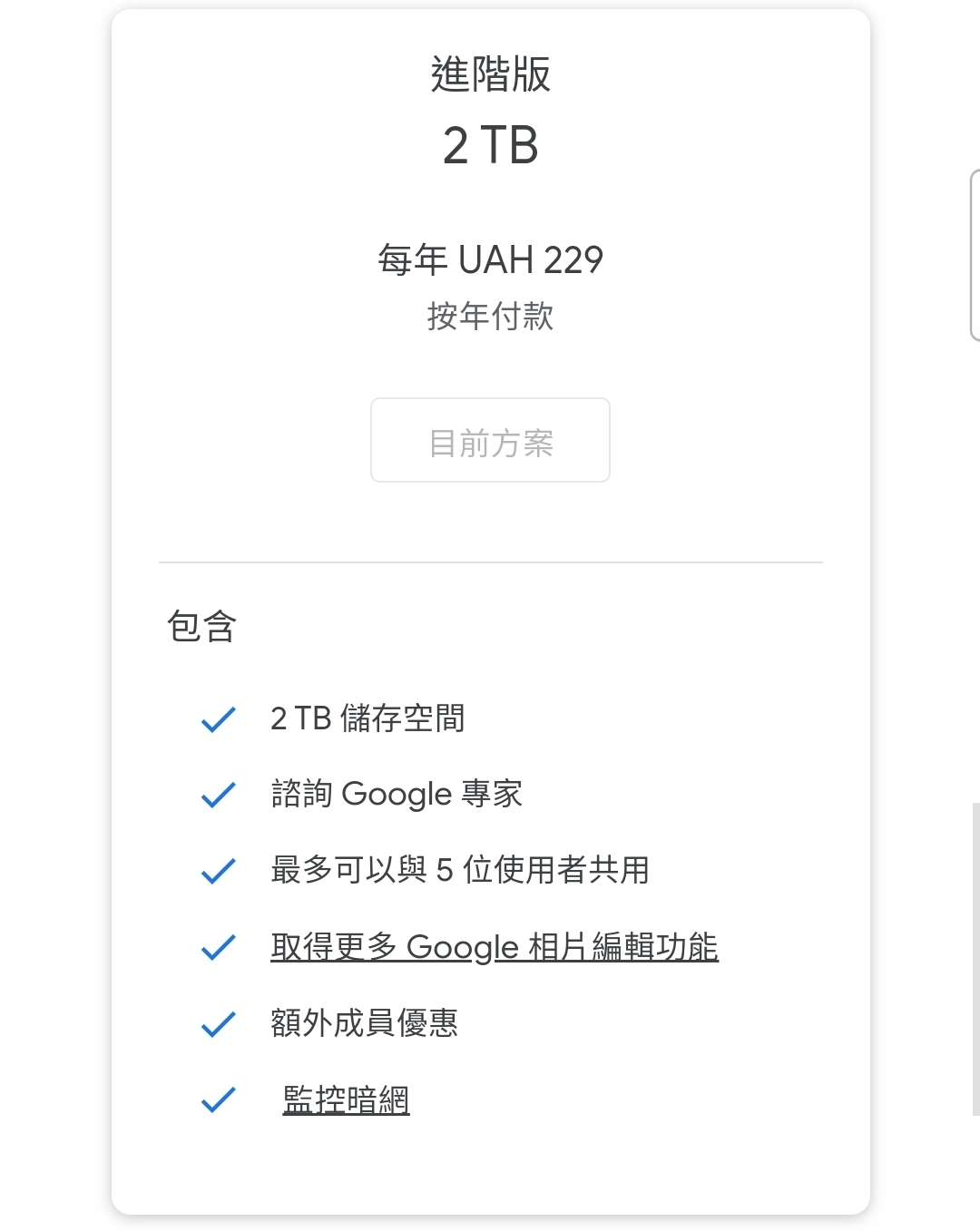 → Chen031: 印象中Google 雲端2TB年繳約529.99 TR約 101.9.189.11 11/19 07:28