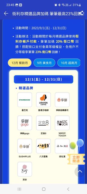 推 lch1218: 幫補充:使用時限定實體門市。另不含百223.141.33.71 12/03 00:08
