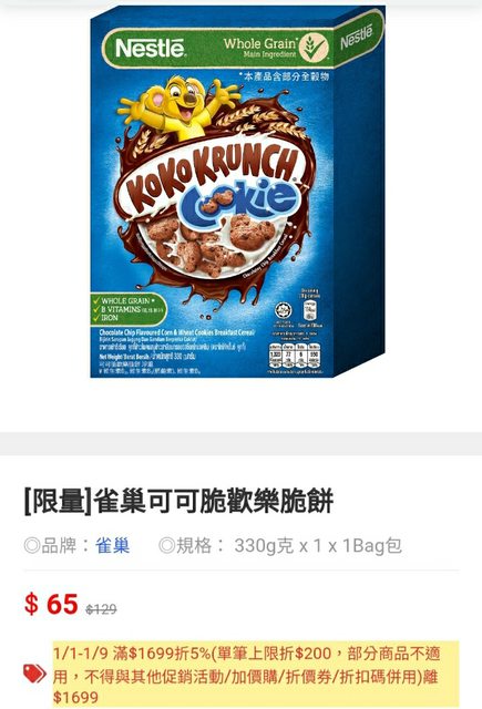 → perseus419: 樂氏的可可脆片也在出清中 幾乎半價 49.217.238.239 01/05 17:09