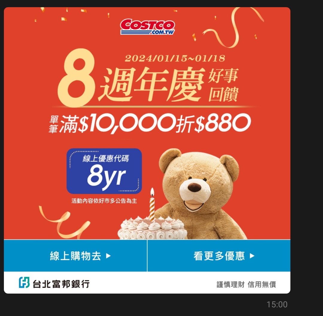 推 una283: 好市多線上信用卡只是多了1%回饋吧220.132.181.237 01/12 07:19