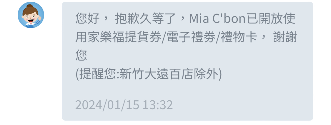 → kkkk1234: Mia C'bon使用了 順便問了一下客服 36.226.129.111 01/15 18:46