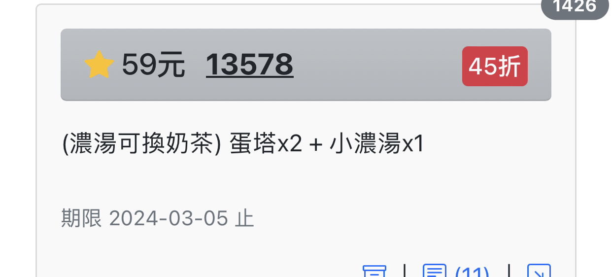 推 tara75: 哇 d大的優惠好喜歡,我愛蛋撻謝謝 114.39.77.33 02/06 02:30