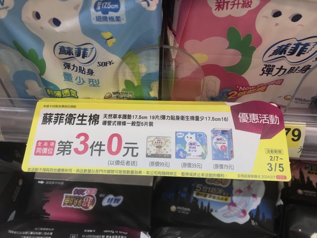 標題[情報] 7-11蘇菲衛生棉系列第三件0元