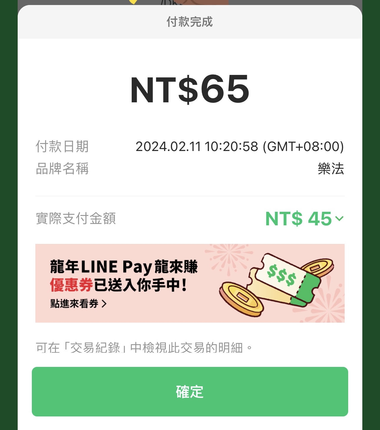 → bailan: 用linepay就拿到一張,回家順路去家樂福買 218.164.78.13 02/11 13:41