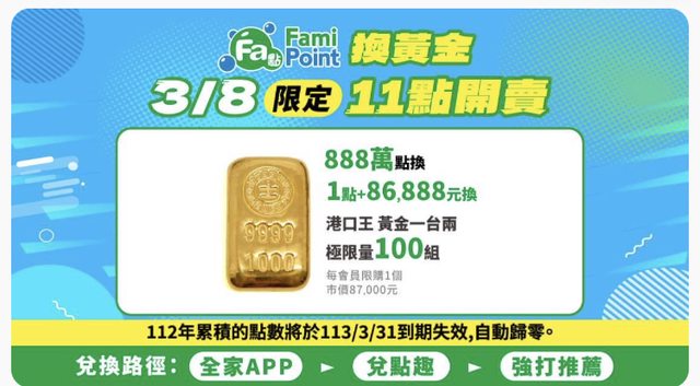 推 MikeLow: 點數很難賺,有多少人會在全家換黃金? 49.216.106.239 03/07 20:26