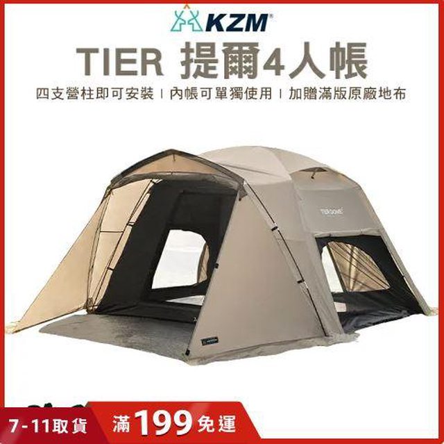KZM 提爾4人帳特價$16,500,訂單9折+850折價券=>$8500/頂,直接原價5折