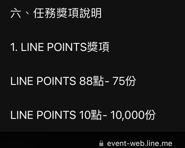 : 獎勵內容有LINE POINTS 100點-限額10份