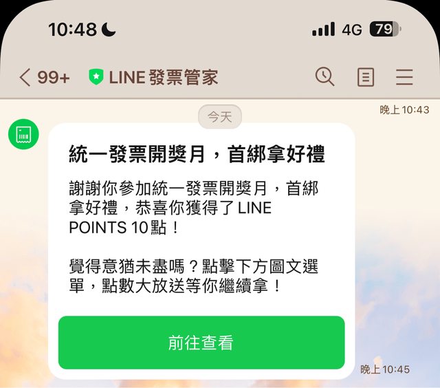 : 首次綁定LINE發票管家可以拿到10點