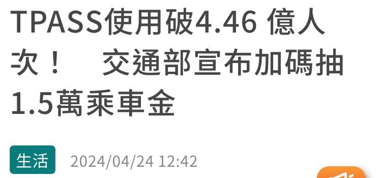 → sinohara: 還有 這個回饋排除所有使用TPASS月票 118.165.210.70 04/24 21:26