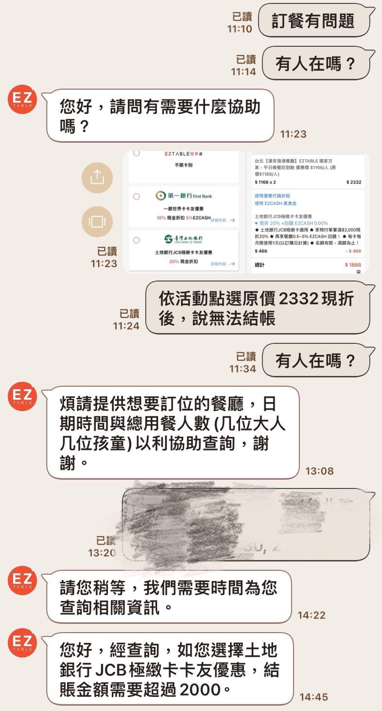 照Eztable的規定,現折後無法結帳。