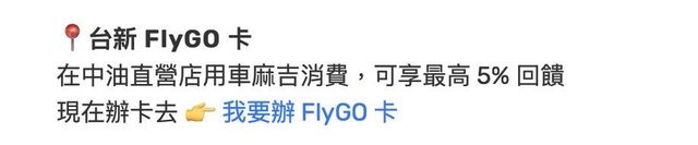 細看台新 FlyGO 卡去中油直營加油還有 5% 回饋,超爽