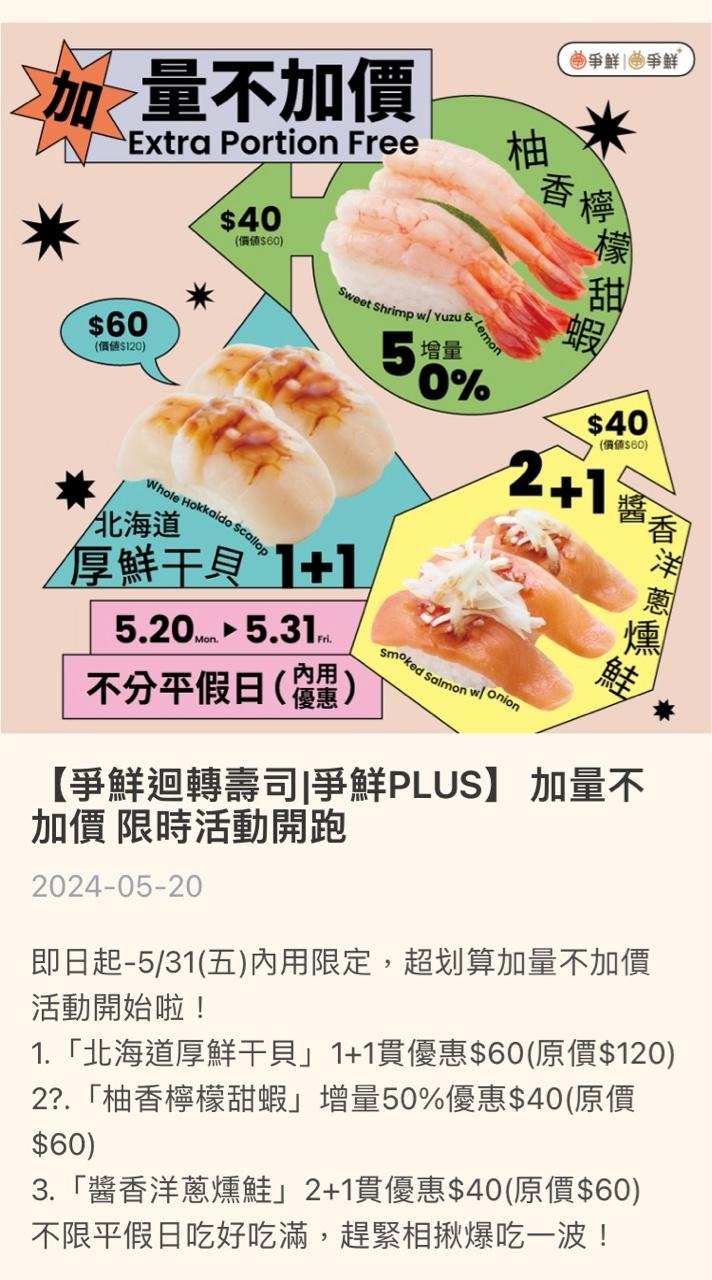 → ronale: 爭鮮是一般迴轉 爭鮮+有加送餐軌道122.118.228.143 05/21 00:05
