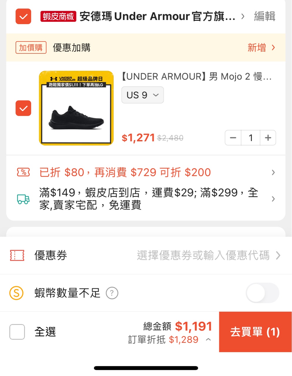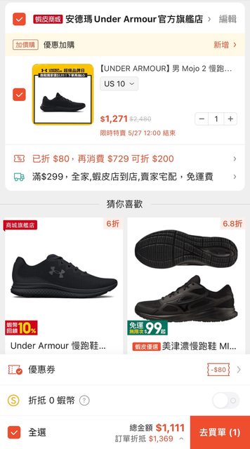 標題[情報] UA跑鞋券後$1111