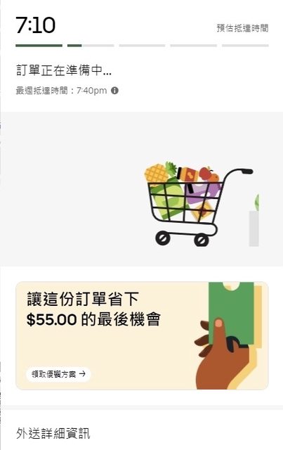: 下單後,你會發現金額異常,點外送的狀態,下拉後會看到跟你金額跟你的購物車金額不符