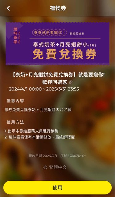 → ccizumi: 只拿到入會禮(免費贈送泰式奶茶一杯2024101.136.217.213 10/07 12:49