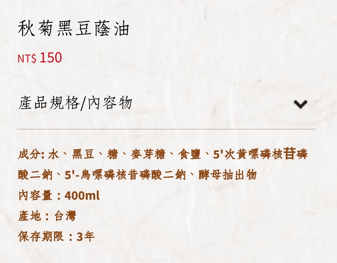 → kinmengon: 就是加味精的釀造醬油,好結案 39.12.66.197 10/09 17:01