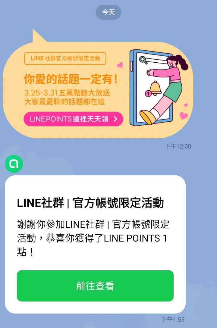 推 TZUYIC: 新光人壽LINE補點,終於跟到。101.139.199.165 03/28 10:03
