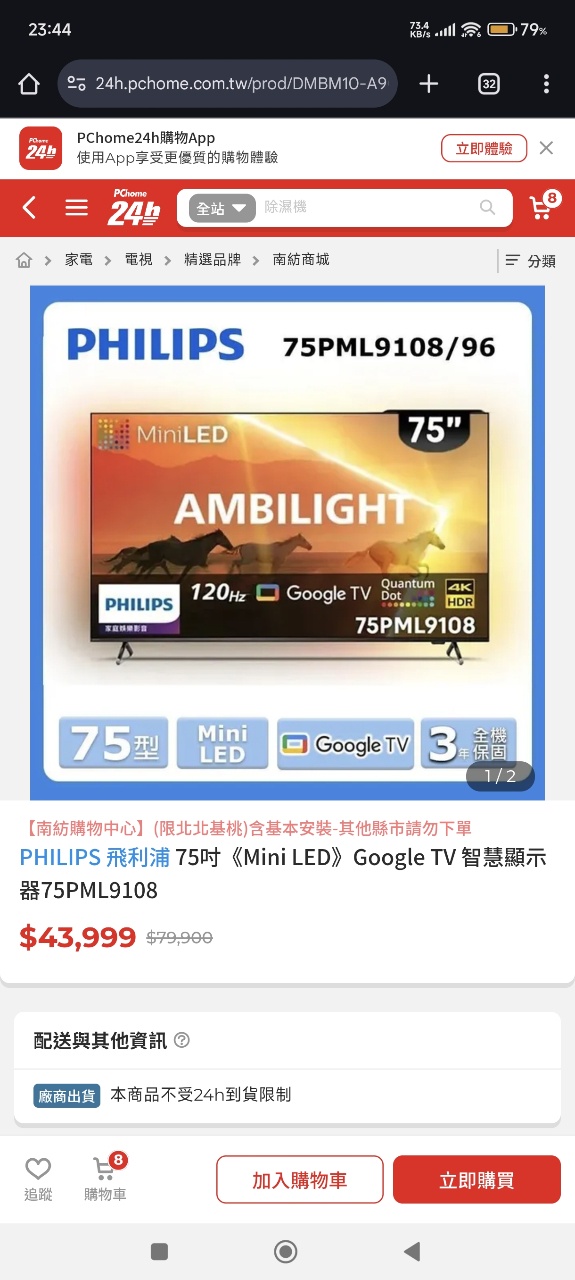 推 yc861129: 飛利浦9109這台 120HZ 4G/32G送套 101.12.153.79 03/05 19:20