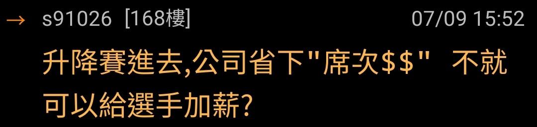 → s91026 : 我前面說打升降賽就能淘汰 "沒料",不就有人說沒隊? 07/09 15:29