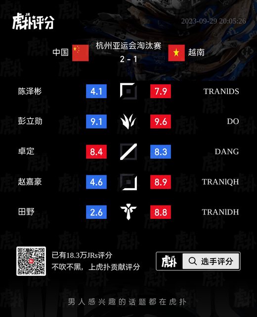 標題[閒聊] 中國 vs 越南 虎撲賽後評分表