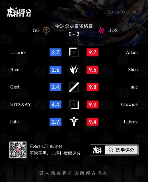 標題[閒聊] GG vs BDS 虎撲賽後評分表