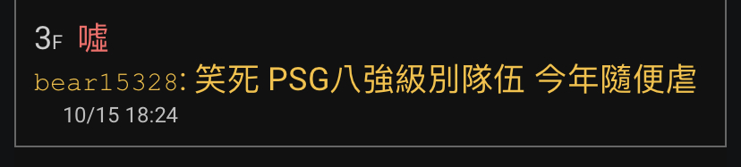 噓 bear15328 : 推一樓 好險我不支持PCS 每年都被虐的爛賽區 10/15 20:36