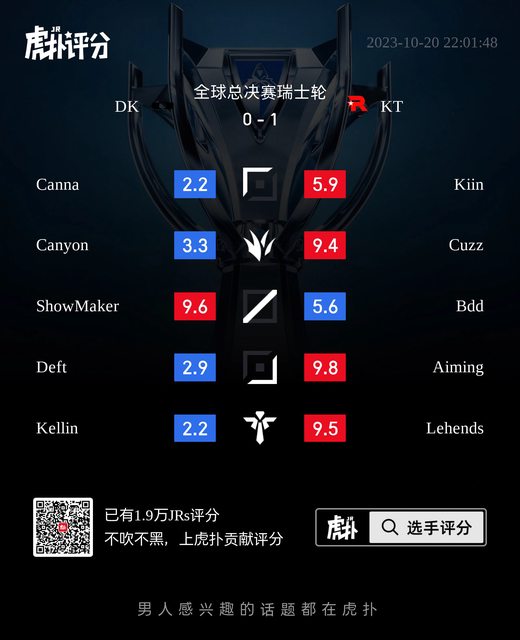 標題[閒聊] JDG vs BLG / DK vs KT 虎撲賽後評分表