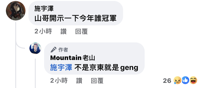 推 willion003 : 就看JDG跟GENG能不能打破山神預言了 10/21 00:36