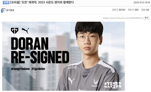 (官方)Doran再續約,2023年賽季將繼續與GenG同行