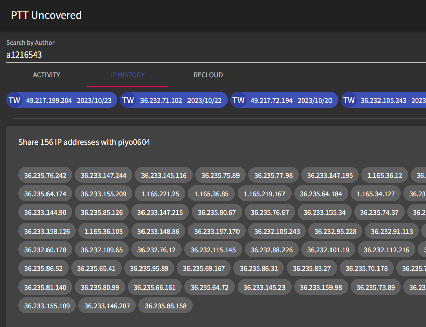 經查 s458963 與 wayne5992 至少於以下三個時段有相同IP記錄: