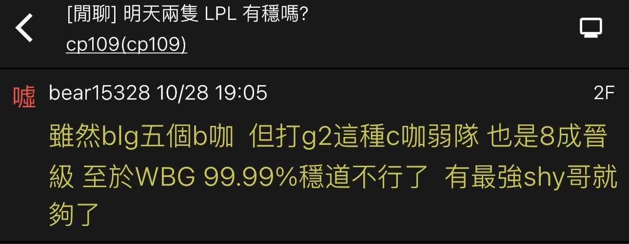推 knight714 : WBG 10/29 15:15