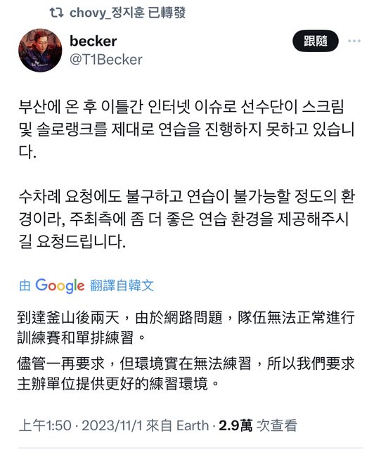 推 ahomegod : T1理由集+1 網路太爛不能練其他隊的釜山網路太好 11/01 02:41