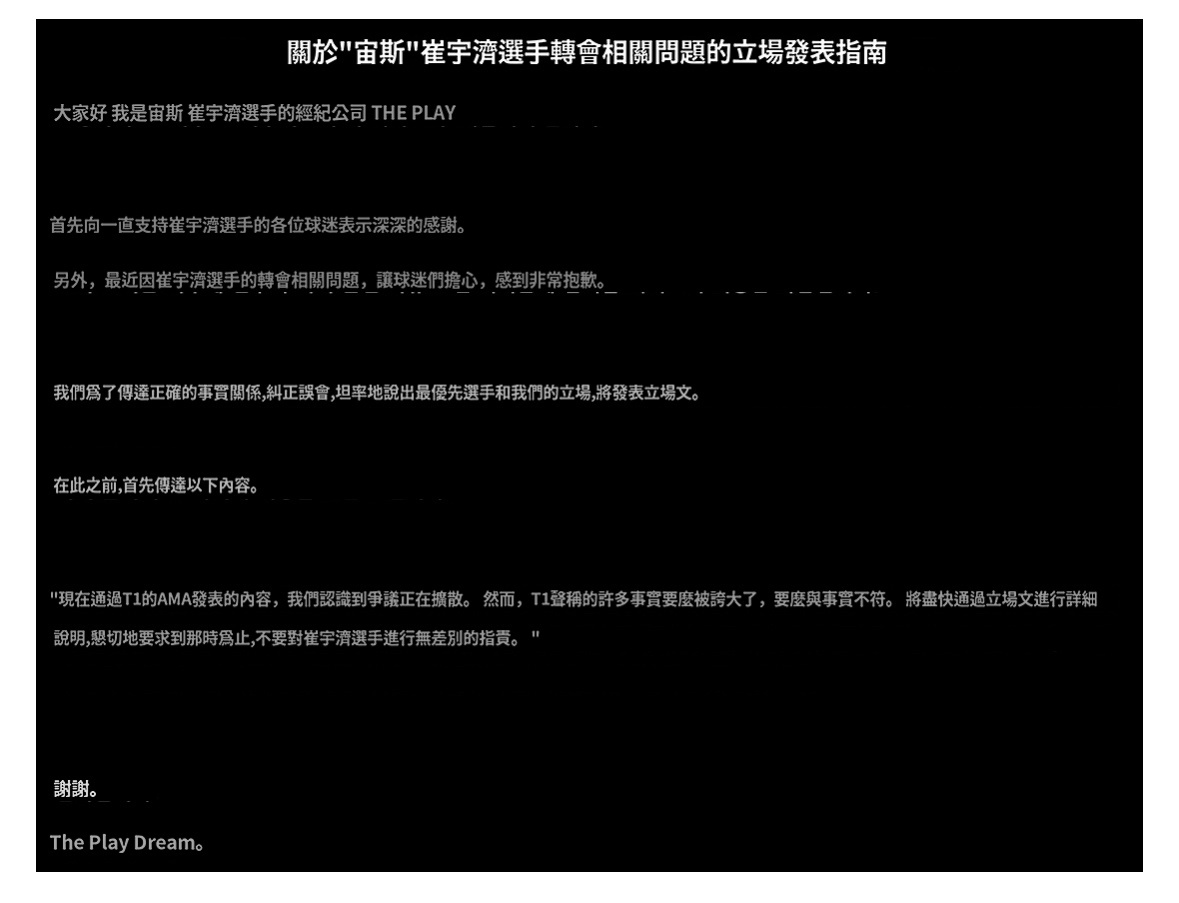 → giantbody : 經紀公司:完整澄清會儘快發布 認為T1陳述內容有誇11/22 05:05