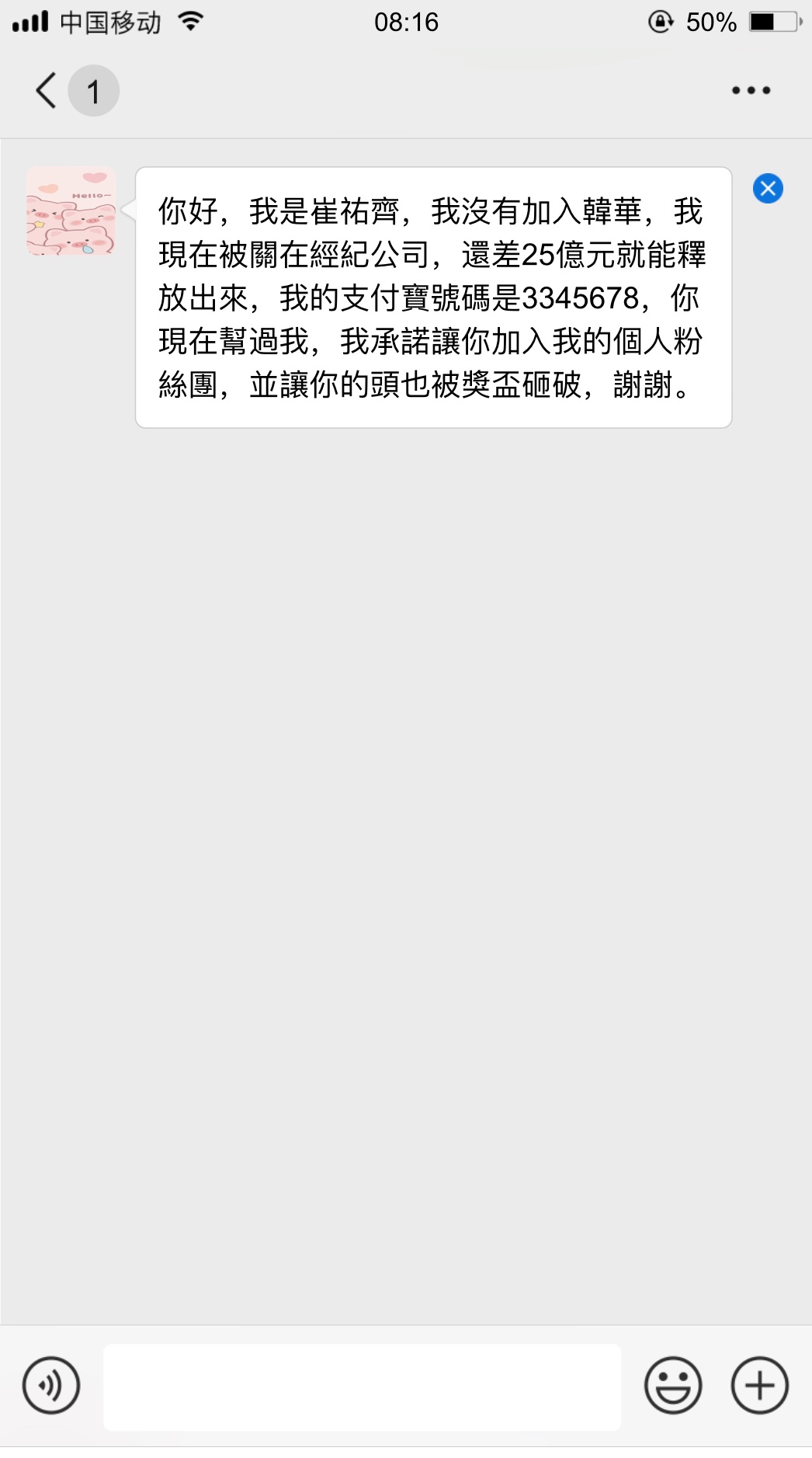 → hc880523 : 在小黑屋裡,還差X韓元才能跟韓華解約,你現在幫過 11/22 08:07