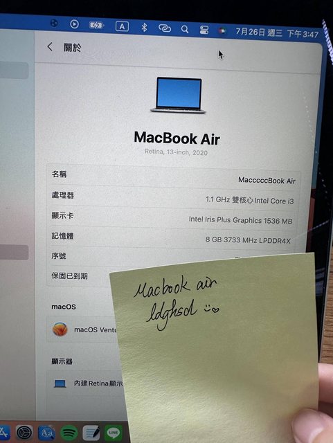 標題台北 Macbook air 13吋 i3/1.1GHz 2020