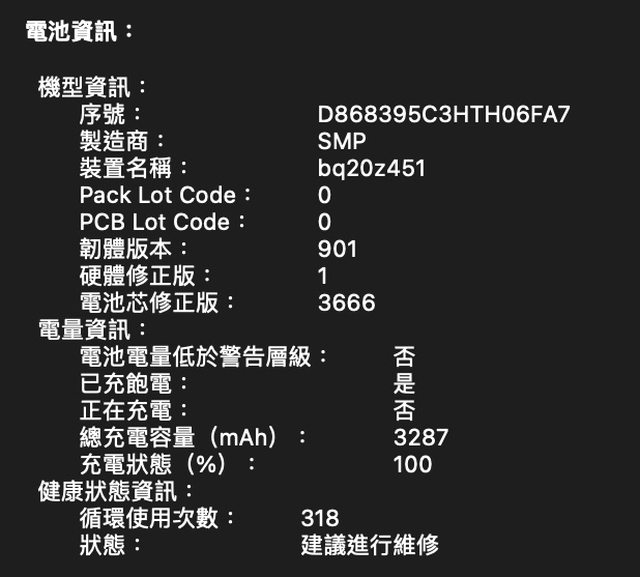 電池循環度318次
