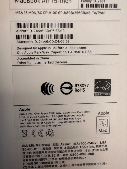 標題[販售] Macbook Air M2 15寸 午夜色 全新未拆