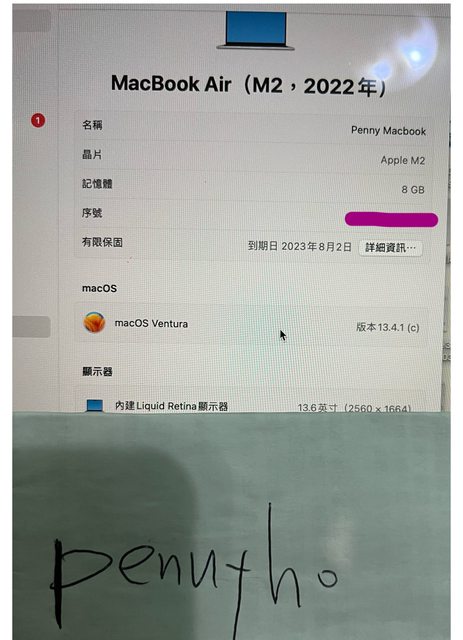 標題[販售] 嘉義台南 二手MacBook Air m2 13吋8/256G