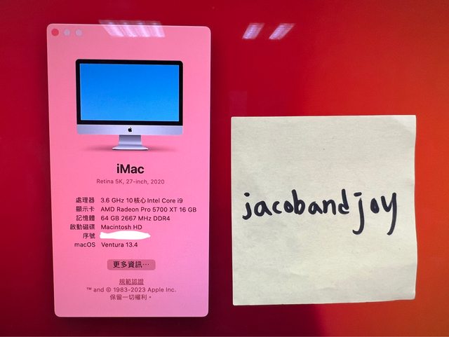 螢幕:27 吋,Retina 5K(5120 x 2880)顯示器 ,P3廣色域,原彩顯示技術