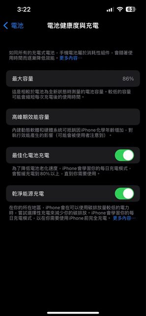 電池健康度86%