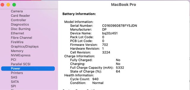 充電循環次數 940 (未更換過)