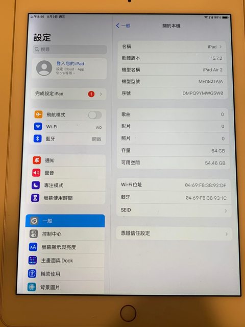 [型號] iPad Air 2 MH182TA/A