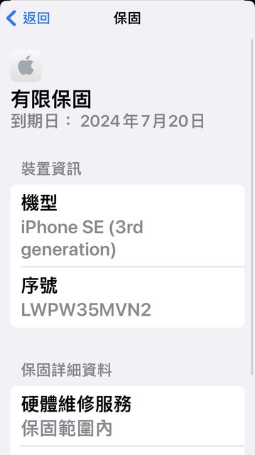 [保固]保固至2024/07/20