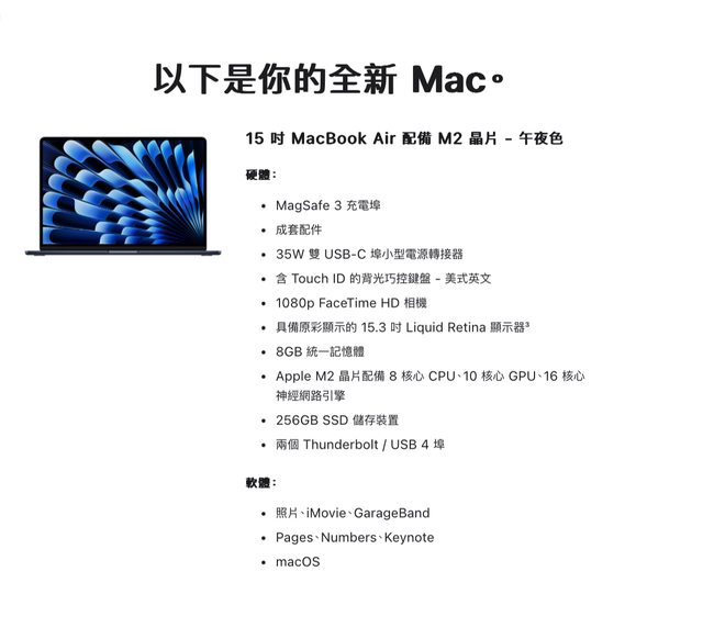 [規格] 8GB/256GB 8CPU/10GUP,午夜色/英式鍵盤