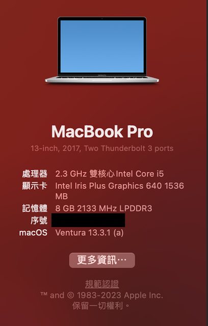 標題[販售] 雙北 Macbook Pro 2017 13吋 8G/256G