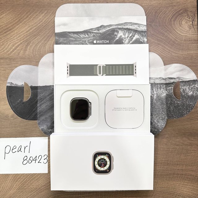 [型號] A2684 [規格] Apple Watch Ultra 49mm [保固] 2023/09/28 [盒裝配件] 原廠充電線+原廠綠色高山錶環S [售價] $16500 [交易方式/地點] 面交/雙北 桃園 新竹 郵寄(店到店,運費買家負擔)/其他縣市 [連絡方式] 站內信 或 Line (來信請提供Line ID) [商品照/補充說明] 女用機,電池健康度100%,9成新無明顯外傷,且有貼imos藍寶石保護貼+亮面不鏽鋼外框,手錶狀況請參考照片~ 目前WatchOS是搭載10 Beta,手機必須也升級到iOS 17才可配對,請特別注意! 綠色高山錶環S已拆封,僅試戴一次,後續無使用~