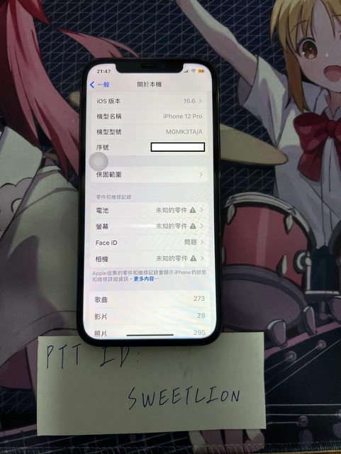 螢幕、背蓋、電池、鏡頭都有換過,FACE ID無法用